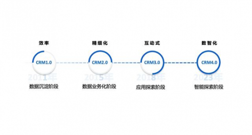 南讯向36氪展示了产品和服务的迭代升级,作为助力品牌连接用户的纽带,在不断进化的十三年时间里,南讯围绕ToC领域CRM的进化过程,将CRM从1.0到4.0总结为:数据沉淀阶段、数据业务化阶段、应用探索阶段、智能探索阶段,并且提炼出了4个发展阶段的核心要点:效率、精细化、互动式、数智化。