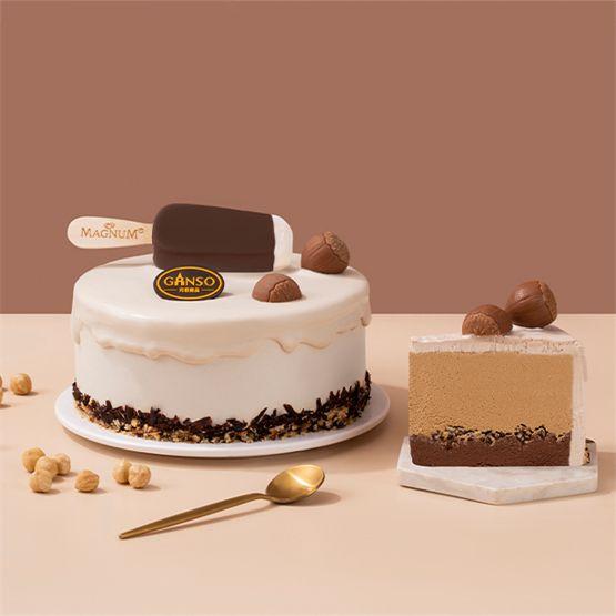 意式榛子巧克力味的元梦丝巧冰淇淋蛋糕,一上市就凭借浓郁风味迅速走俏市场,获得了巧克力控的广泛青睐。元祖与梦龙联名款元梦丝巧冰淇淋蛋糕,奶油淋面上是梦龙香草巧克力雪糕,内里是土耳其进口榛子酱制成的榛子口味冰淇淋和进口可可制成的巧克力口味冰淇淋夹层,再点缀上酥脆巴旦木,给人以细腻、松脆、顺滑的多重口感,浓浓的巧克力风味更是让人回味无穷。