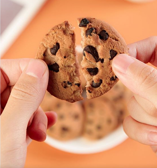 撕开独立小包装,就可以闻到浓郁的巧克力香气,每一份里面两块饼干,每块曲奇上面豆镶嵌着满满巧克力豆。咬的时候可得注意,因为这个曲奇苏到掉渣!一个不小心曲奇碎就会洒下来。细细咀嚼,酥脆的巧克力味曲奇和香醇的巧克力豆在口腔中碰撞出柔滑、醇香的火花,双重口感翻倍美味!
