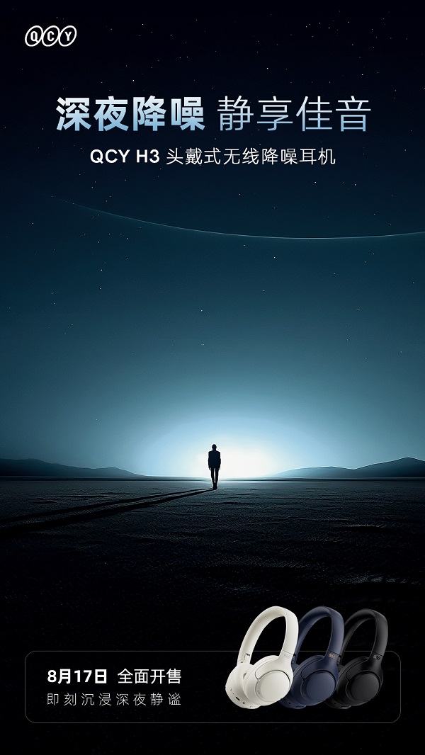 8月17日晚上8点,QCY H3头戴式无线降噪耳机正式开售,首发价格仅199元。全新超高性价比的头戴式无线降噪耳机,期待带来深夜降噪般的绝佳体验。