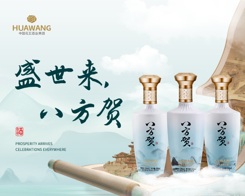 「八方贺特级清香型白酒」,作为花王酒业首款清香型白酒,以中华文化及丝路精神为立意,将白酒与文化价值融合,承古鉴今,致敬盛世。通过链接汉武盛世、开元盛世、大明王朝的三个朝代的丝路文化,传递精神共鸣,传递“盛世来 八方贺”的品牌理念。“传”的是匠心,“承”的是精神,定位于中高端文化传承酒。