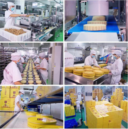 为此,海龙阁还建立了一万多平米符合国际GMPC标准的无菌和恒温、恒温车间,引进多条全自动生产设备、打造了“一条龙”的月饼现代化产业链,确保月饼出品健康、安全。