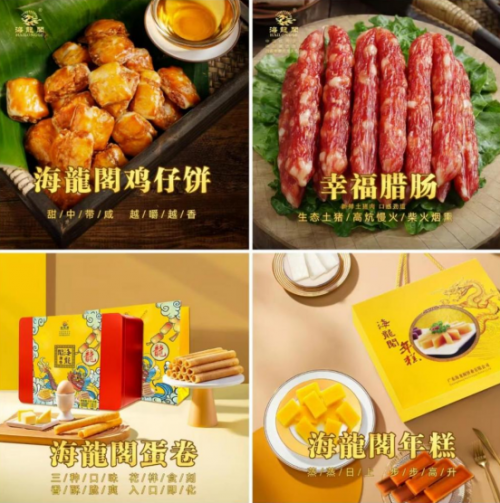 除了拖罗饼,海龙阁还出产销售鸡仔饼粽子、山茶油、年糕、腊味、曲奇饼、蛋卷等等,不断创新,在零食化、西饼化的板块推深做实,为海龙阁食品产业注入新的活力。