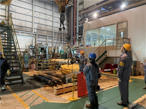 专、研在这里,抓住重点迎难而上,这次定修中有好多项目首次碰到,对这些史无前例的吊运作业,精心组织、周密部署、根据各机组的空间结构制定的吊运方案,尤其是3#CGL热镀锌C808机组锌锅技改项目增加锌锅感应加热器线圈套装任务,中冶宝钢基层单位认真梳理吊装成功的经验,大胆创新,建议施工方采用三级指挥方式进行指挥吊装作业,并使用专业工具桥架直接吊运,两端使用麻绳做牵引固定,从C808机组9层平台至上而下,省略了诸多中间环节,打破岗位壁垒的束缚,仅仅只用了一个昼夜的时间,锌锅感应加热器线圈顺利吊装就位。比原定计划提前了一天时间。