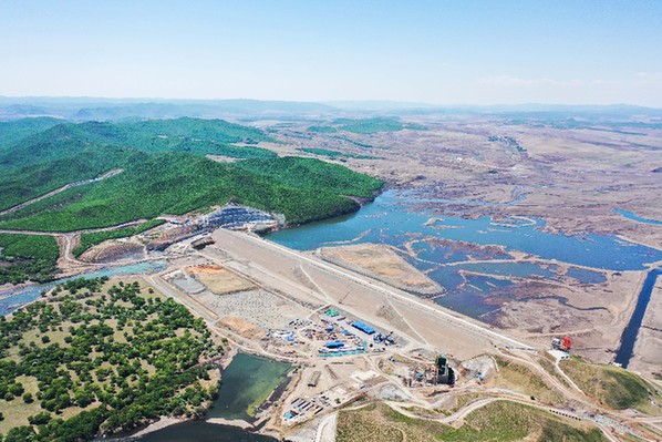 内蒙古引绰济辽工程加紧推进。图为引绰济辽工程文得根水利枢纽施工现场。新华社记者 刘磊 摄