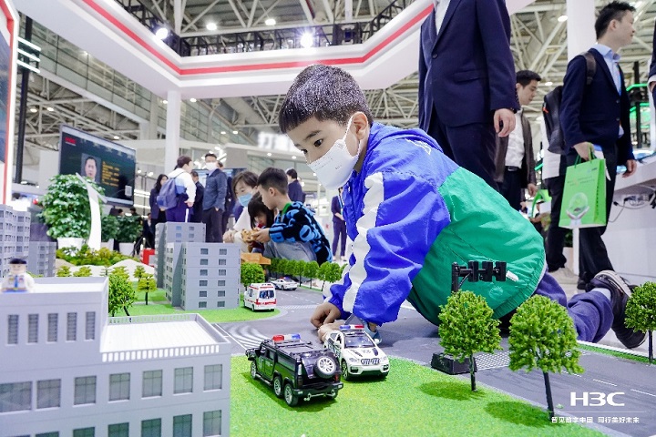 “数智融合·焕然翼新”电信云生态展区则重点呈现新华三与中国电信携手推进云网融合变革的实践成果。在技术层面,详解算力网络、新型城域网、创新5G、主动安全等如何助力东数西算及数字中国建设发展;在政企合作层面,重点呈现与天翼云合力探索数智赋能云业务变革、持续深化数实融合的典型案例,呈现赋能百行百业的综合能力;在家用等新兴业务层面,展现全新FTTR、智能终端等方案如何服务千家万户。展区还特别设有嘿板OS数字孪生教室,基于数字人像技术为观众创造身临其境的课堂感受。成果展期间,新华三也参与多场电信云生态大会论坛,与众多行业专家探讨云网融合发展新未来。