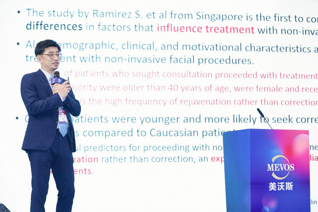 5月5日,美沃斯国际医学美容大会特邀嘉宾——黄柏翰皮肤专科美容医学诊所黄柏翰医师在分享全面部轮廓注射经验时提到,注射填充物能实现明显面部改善效果,其中胶原蛋白填充剂因其不透明性,能够有效降低丁达尔风险,因而成为医师首选填充物之一。黄医师在演讲中特别指出,东方人面部轮廓偏宽,医师在进行临床诊疗时,应根据东方人面部老化特点以及求美者需求进行产品选择和方案设计,尽量使临床方案实现个性化、高效化。黄医师表示,注射填充剂的量没有公式可言,医师要成为一名雕塑家,用双手打造求美者未来的美丽!