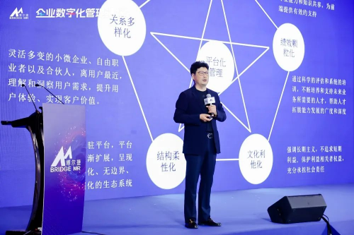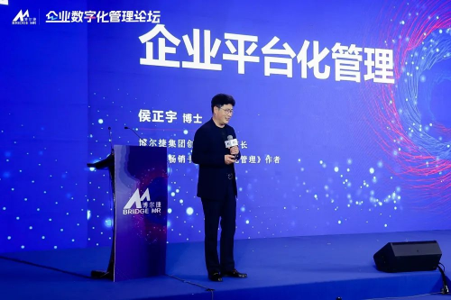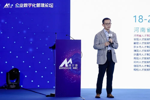 侯博士以2019年与中欧国际工商学院的忻榕教授、阿里巴巴产业互联网中心主任陈威如教授历经两年共同创作的《平台化管理》一书作为理论指导,以及多年人力资源行业经验的沉淀和敏锐的市场洞察,总结构建平台化企业的重要性,包括小前端、强中台和稳后台的建设。侯博士介绍了平台化管理的五化模型:能力数字化、关系数字化、绩效颗粒化、结构柔性化、以及文化利他化。侯博士分享了博尔捷集团的成功经验,鼓励其他企业在探索和实践中进行数字化转型和组织变革,以实现平台化管理。