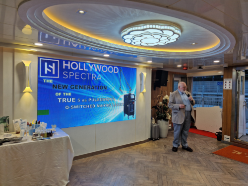 在游船特约演讲中,Dr,Glen 着重介绍了路创丽即将在中国市场重磅上市的旗舰调Q Nd:YAG设备 Spectra Pro 的创新理念、技术优势及临床应用。