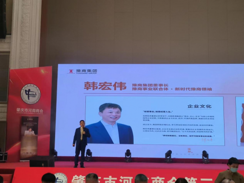 作为本次会议独家冠名赞助商,上海市河南商会副会长、豫商集团总经理石宝峰致辞。石总首先对肇庆市河南商会的圆满换届及尚顺发会长全票当选并连任第三届会长表示祝贺,并表示很荣幸能和华南地区各商会负责人、豫商精英共聚一堂,共叙乡情,对肇庆市河南商会对肇庆和河南两地经济社会发展所做出的贡献表示认可,同时,深感肇庆市河南商会建立的初衷与豫商事业的“打造全球豫商圈层共创第一平台”愿景不谋而合。当前,河南新一轮高水平开放需要汇聚各方力量共同参与,新格局下天下豫商应顺势而为,为了持续在商业发展道路上互相扶持,彼此赋能,共创豫商发展的新伟业,豫商集团决定以给予大会唯一指定用酒赞助支持。弘扬豫商精神、传递中原文化是大家共同的心声和梦想,豫商集团倾力打造的“中原文化酱香新典范”——豫邦酱酒也得到了与会嘉宾高度赞誉。