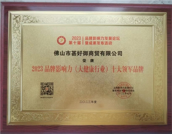 2023年7月21日-7月22日,2023(第十届)品牌影响力发展论坛暨成果发布活动在北京举行。佛山市甚好御商贸有限公司及旗下品牌甚好御,凭借出众的产品力及品牌力获得了各界的高度认可,荣获“2023品牌影响力100强”“2023品牌影响力 (大健康行业)十大领军品牌”。甚好御董事长王雄,荣获“2023品牌影响力杰出创新人物”。