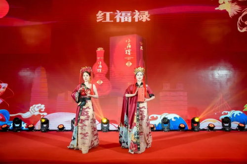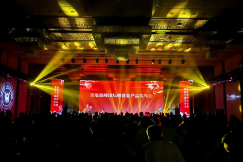 传承喜宴动力,发挥喜宴精神,会上,小角楼隆重颁布喜宴产品模式战略,带来喜宴核心大单品:盛世金鑫(升级版)、小角楼红福禄等。