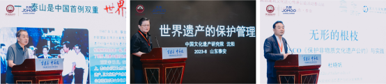 遗产地保护与可持续发展是一个重要的领域,这些遗产地不仅代表了人类的智慧和创造,更是世人与过去相连的纽带,也是留给后人的宝贵财富。在上午学术活动现场,泰山管委会原副主任、研究馆员吕继祥,中国文化遗产研究院原副总工程师沈阳,复旦大学国土与文化资源研究中心主任、博士生导师杜晓帆,3位专家进行了主旨发言,为做好泰山的保护、研究和利用建言献策。