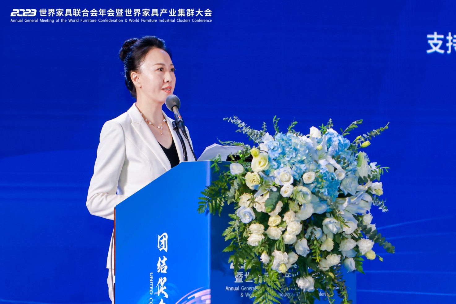 世界家具联合会秘书长、亚洲家具联合会副会长兼秘书长、中国家具协会副理事长兼秘书长屠祺女士向全体与会嘉宾作《全球家具行业发展报告》。
