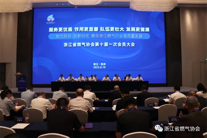 2023年8月18日,浙江省燃气协会十届一次会员大会在杭州城北文澜大酒店召开,中国城市燃气协会理事长刘贺明、浙江省住房和城乡建设厅城市建设管理处调研员邓富根、浙江财经大学中国政府管制研究院执行院长王岭,浙江省燃气协会法律顾问、省住建厅管道燃气特许经营评估专家徐乐游、孔晓香律师,杭州银行小微信贷中心总经理金婷以及205家会员单位代表参会。大会由副理事长、温州市燃气集团有限公司党委书记、董事长胡劲主持。