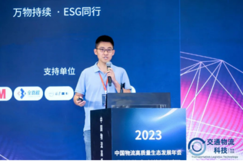 郭俊杰先生为我们介绍了全球捷运专注于全球海港空港配套物流、仓储、关务和低碳运输的数字化、物流设备智能化和网络运营全球化。围绕国际物流标准化的解决方案进行点、线、面的拆解并详细解读了全球捷运在ESG全链条绿色可持续发展方面的实践与探索。他提出首先将业务最小单元进行梳理,系统实现SAAS化,将各场景业务上线到系统,再将相关联的业务进行串联,做到关联环节可视,最后形成数字化的网络布局,对客户形成国际物流标准化的解决方案,智慧云仓,仓网协同,资源共享。最终实现ESG全链条可持续发展。