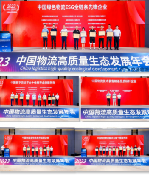 本次峰会设立了2023中国物流优秀创新案例,共计公布了8大奖项,分别是:中国绿色物流ESG全链条先锋企业、中国数字供应链科技创新高效卓越之星、中国数字货运平台十佳推荐金牌服务商、中国物流技术装备精湛品质标杆企业、中国物流推荐车辆、中国综合物流解决方案十佳服务商、中国制造业物流推荐运输企业、中国物流/数字物流领军人物,并由郑德岭社长为获得荣誉的企业进行授牌。(颁奖仪式)