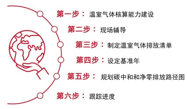 对于百威的整个价值链而言,范围一与范围二的碳排放占整体碳排放近10%,而范围三则高达92%以上,因此企业不仅要做好自身的碳管理,实现上下游协同管理也至关重要。百威在整个价值链减碳上积极发挥主导作用,通过搭建供应链碳管理平台,从温室气体核算能力建设、现场辅导、制定温室气体排放清单、设定基准年、规划碳中和和净零排放路径图及跟踪进度等六大步骤为供应商提供关于他们自身的碳中和及净零排放路径的指导。