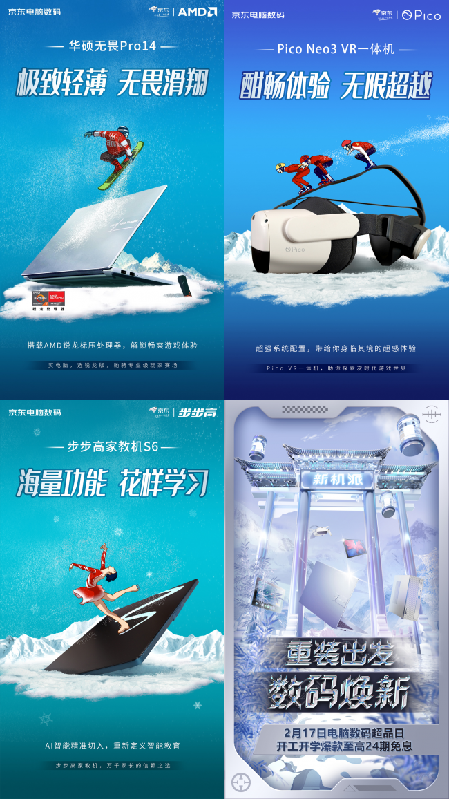 本次京东开年活动以“重装出发 数码焕新”为榜单会场主题,其中开新必备、送礼攻略和教育神器榜单更是完美解决了当下年轻人对于开学季、复工季、情人节的购物困扰,该榜单会场总阅览量高达111.5w+。