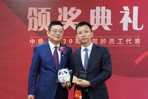 (中意人寿赵雪松董事长为20年司龄员工代表颁奖)