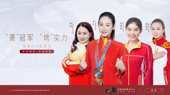 要买专业蒸烤,就选凯度电器。此次凯度315品质日,北京奥运射击冠军陈颖、伦敦奥运击剑冠军骆晓娟、里约奥运跳水冠军刘蕙瑕、艺术体操世界冠军朱丹4位体坛冠军联合推荐凯度电器,正面诠释了凯度的冠军精神和冠军品质。