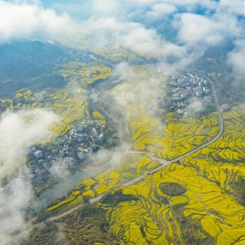 进入三月中旬以来,江西婺源的十万多亩油菜花竞相开放,正式进入了盛花期。迷人花海遍布每个村庄,风姿灼灼,景色迷人。在“中国四大花海”之一的江岭景区,漫山遍野的油菜花随着梯田弯曲的线条蜿蜒至远方,犹如金蛇舞动,蔚为壮观。在李坑、思溪延村等景区油菜花盛开于徽派建筑之间,与小桥、流水、人家构成了一幅娟秀柔美的江南春景图,引来了天南地北的游客赏花潮。