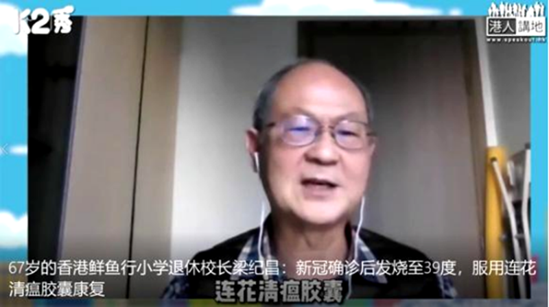 香港食物及卫生局局长陈肇始表示,在第五波的抗疫战中,中医药全方位广泛深度参与,在疫情的预防、治疗以至复康的全过程中,发挥了重大作用。不少居民也在网络上晒出他们在中医药帮助下恢复健康的经历。疫情暴发后,香港上水区乡事委员会主席、北区区议员侯志强不幸感染,当时各处急症室隔离设施不足,他只好选择居家隔离,并定时服用连花清瘟胶囊,在五日后核酸检测转阴。在接受“港人讲地”栏目直播采访时,67岁的香港鲜鱼行小学退休校长梁纪昌表示,他在3月1日不幸确诊新冠肺炎,发烧至39度,居家隔离按时按量服用连花清瘟胶囊等药物,治疗6日后,两次核酸检测阴性,最终康复。