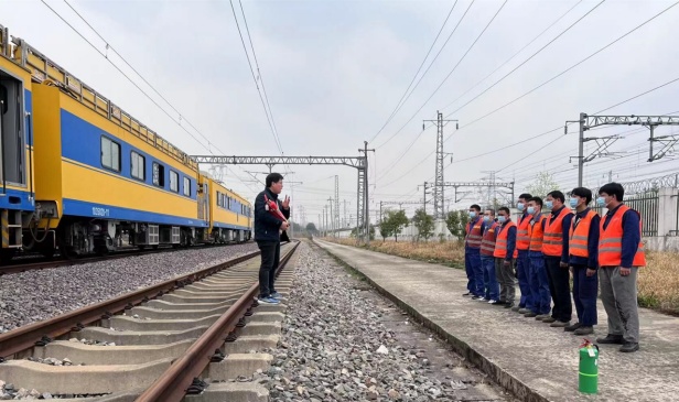 中国中铁电气化局运管公司上海维管处合肥维管段年度接触网三级修工作在长安集综合维修工区有序开展。气温回暖,保证安全生产的同时,消防安全亦不能疏忽。为加强工区车辆运用安全,增强工区作业人员的消防安全知识,提高安全防范意识,预防接触网检修列(JJC)突发火情,我们开展了消防演练活动。