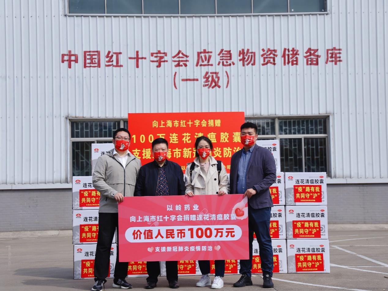以岭药业向上海市红十字会捐赠价值100万元连花清瘟胶囊
