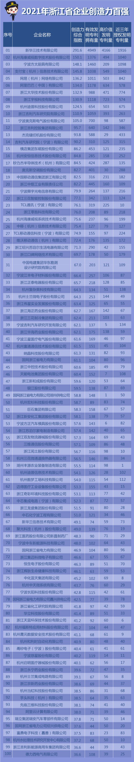 据悉,该榜单去年起首次发布,今年以2021年底数据为基准,根据有效发明专利数量、高价值发明专利数量和近三年发明专利授权数量等指标,对省内企业创造力进行了评价排名。