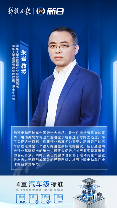 新日用汽车级的技术+汽车级的服务为消费者带来安全可靠、高性价比的产品和服务体验,打开了电动车行业的新格局,重新定义了行业标准,有利于行业的健康发展。正如清华大学产业研究院院长、清华大学经济管理学院教授、博士生导师朱岩教授所说:新日采用汽车级锂电池就是一个很好的设计高标准的尝试,新日通过助推行业基础标准的统一,最终会促进相关产业实现高质量的百花齐放!