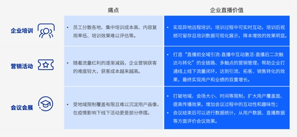 随着企业数字化转型的推进,企业直播的需求将逐渐步入常态化,越来越多的企业感受到企业直播带来的价值。会畅云视频平台将云视频、直播、语音深度整合,面向不同行业及场景应用特征,基于安全、可靠、大规模、可扩展的云端服务,提供更灵活的呈现形式与互动可能,满足企业培训、营销活动、会议会展等场景应用,服务线上线下有机结合,为企业行为的线上迁移扩展了更多可能,逐步成为企业构建数字化运营体系以及保持⻓期竞争⼒的必选项。