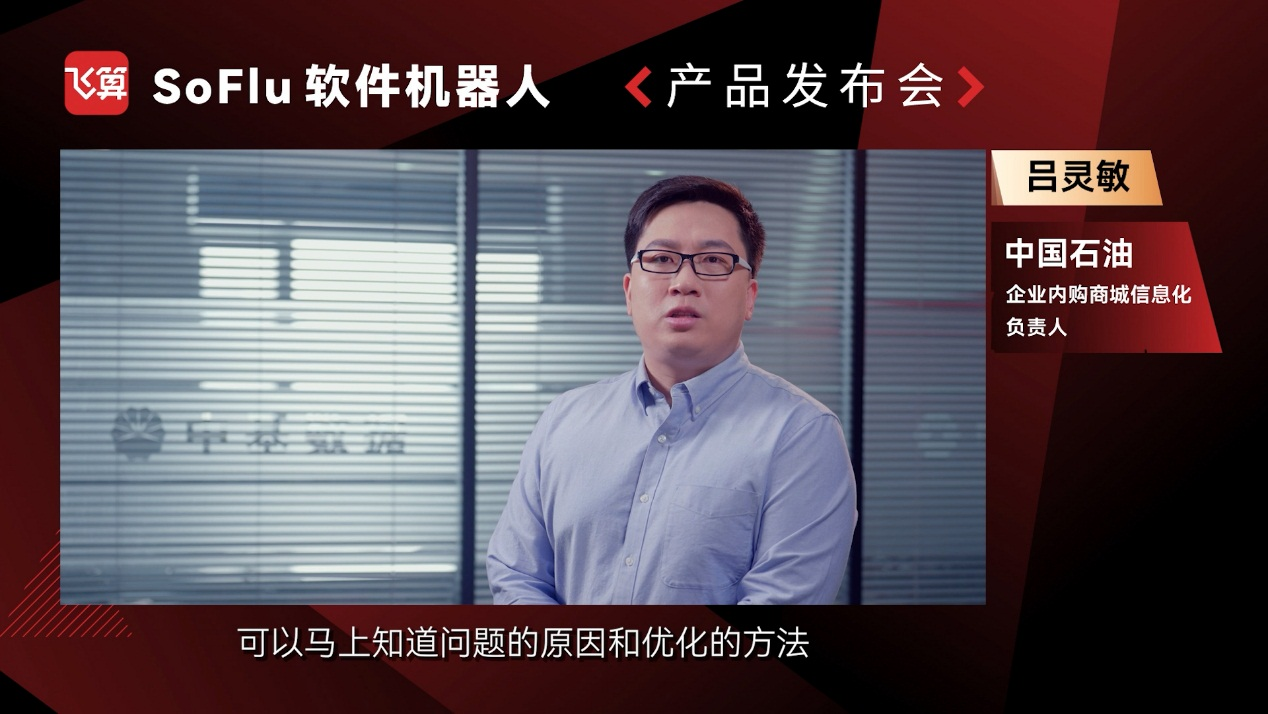 发布会上,大型国有企业中国石油企业内购商城信息化负责人分享道,在SoFlu软件机器人的协助下,他们自己的科技团队仅用9人+5个软件机器人,在45天内就完成了传统开发模式下需要数十人进行6-8个月才能完成的大型电商平台系统重构。