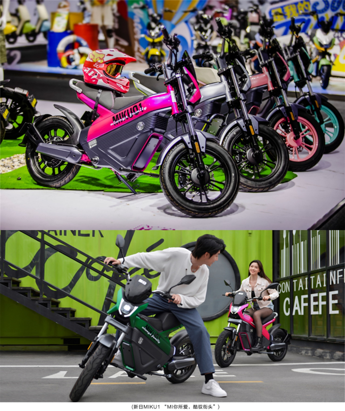 “MI你所爱 酷驭街头”MIKU1:设计灵感来自于赛博朋克,极具未来感的机车外表,在“后现代迷幻美学”的赋能下,拥有了更加科幻的潮流美感,瞬间拉近与年轻人的沟通距离;