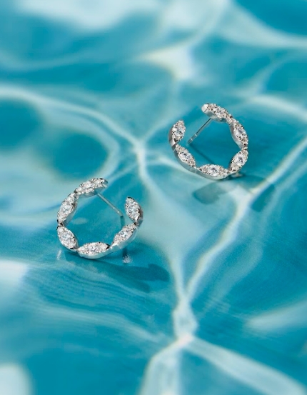 Sunburst Wrap 钻石耳环,以榄尖形及梨形元素构成,环绕耳垂,捕捉太阳光芒。Marquis Halo 钻石戒指饰有一颗光芒四射的单钻,周围环绕着令人联想到太阳光芒并错综复杂的钻石光环。这款别致而低调的Dewdrop钻石手镯以幻觉镶嵌钻石勾勒「种子」图案,自然地贴服肌肤。