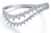 这款手镯的曲线宛如雕塑品,摇曳间,以「幻觉镶嵌法」呈现的钻石,