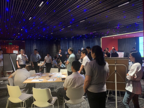 在海新域业务开展关键战略支柱组织能力及业务优先级研讨环节,海新域城市更新集团同部门领导及员工分被打散分为6个小组,为海新域轻资产业务及运营献言献策,产出121条创意经,涵盖投融资、开发建设、资产运营、营商服务、创新发展、物业管理、法务金融、人才服务等众多方面。同时各小组对自己提出的业务内容进行了可实施性论证和优先级研讨,之后6个小组依次路演了自己的思考成果。通过这种方式加深了各级领导及员工对海新域轻资产业务及运营的理解,加速了集团业务整合,统一了集团经营方向及思想。