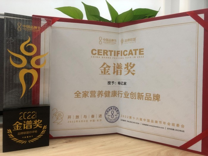 8月8日至9日,2022第十六届中国品牌节年会在长沙盛大召开,“2022中国品牌金谱奖”评选随之新鲜出炉,畅亿家荣获“金谱奖·全家营养健康行业创新品牌”,成为今年独一上榜“金谱奖”的大健康创新品牌。金谱奖通过品牌行业地位、品牌购买力、品牌活跃度、消费者影响力、品牌社会责任感等多项指数的综合评选,评选行业年度表现最佳的品牌,每年评选1次。每行业入围30强,最后决出品牌中国金谱奖荣誉。