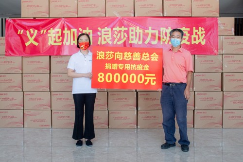 8月18日,浪莎集团董事长、义乌民建会员翁荣金代表企业浪莎集团向义乌市慈善总会和义乌市教育局捐赠100万元,以表达对政府的感恩之情和对社会的关爱之情。捐赠包括了80万元现金,及30万个口罩、防晒衣、冰袖和袜子等共价值20万元的防疫物资,教育局、工商联、市场委、慈善总会和义乌民建等单位的领导出席本次捐赠仪式活动。
