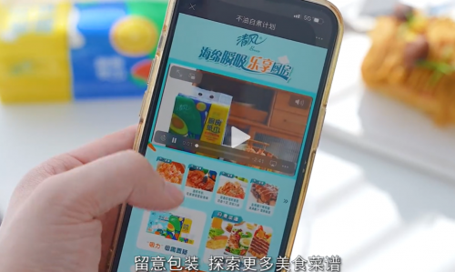 不仅产品去油实力能打,清风还推出产品伴生增值服务平台——不油自煮计划,大家只需“一扫”产品包装二维码即可获得自煮教程学做菜,解除下厨困扰的同时,轻松享受自煮的愉悦。