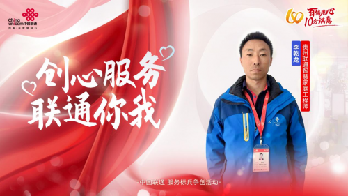 2012年李乾龙从部队退伍后加入贵州六盘水联通智慧家庭工程师服务团队,一干就是十个年头。作为拥有十三年党龄的老党员,他吃苦在一线、扎根在一线,立志做一枚“螺丝钉”,稳扎稳打就是他对待工作的态度。他说自己的工作目标很简单,就是尽心尽力的为三个乡镇3117户宽带用户做好服务,为建设平安乡村贡献绵薄之力,并在公司数字化建设的进程中不断充实完善自己,让自己在数字化转型发展浪潮中不掉队!