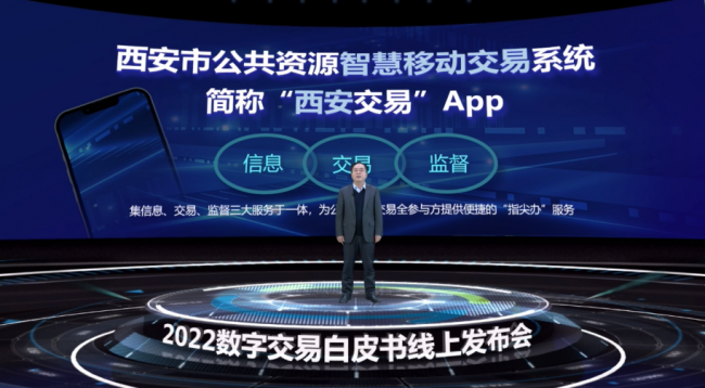 在发布会上,西安市公共资源交易中心李积文主任面向全国观众分享了西安市公共资源智慧移动交易系统。据李积文主任介绍,西安市公共资源交易中心于2021年5月开始成立核心项目组,着手基于电脑端全流程电子化交易系统,开发建设智慧移动交易系统(简称“西安交易”App);2022年3月30日,中心依托移动交易App完成了全国首例建设工程项目移动开标。