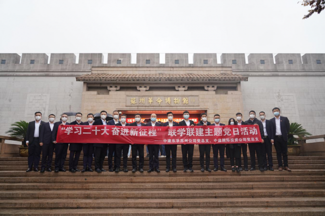 11月17日,苏州公司党总支与中建国际投资公司党总支携手共赴苏州革命博物馆、中共苏州独立支部旧址开展“学习二十大 奋进新征程”联学联建主题党日活动。东孚苏州公司党总支部分党员代表,中建国际投资公司党总支部分党员、入党积极分子代表共计20余人参加活动。