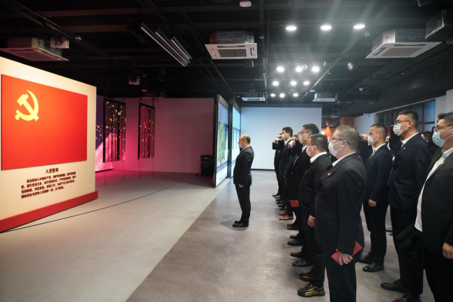在中共苏州独立支部旧址,党员们走过“燃血青春”中共苏州独立支部史迹陈列展示区、“青春我行”实践活动体验区、“青春剧场”多功能厅,通过聆听革命先烈的光辉事迹、沉浸式体验革命年代的艰苦历程,系统回顾了中共苏州独立支部的创建背景、发展过程及影响意义,深刻感悟中共苏州独立支部的发展史、革命史和奋斗史,在恢宏磅礴的历史画卷中感悟着共产党人坚定的理想信念。随后,在“青春誓言”宣誓区,全体党员在牛春雷的带领下面对党旗庄重宣誓,重温入党誓词,切实用红色文化滋养初心、淬炼品行。