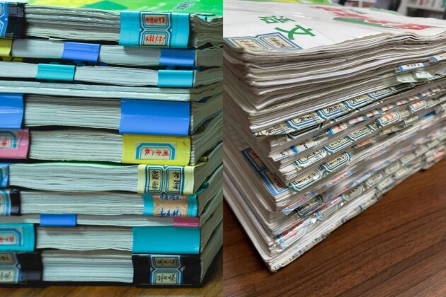 (图为万唯中考研究院一位语文研究员分析的各省区近年真题)