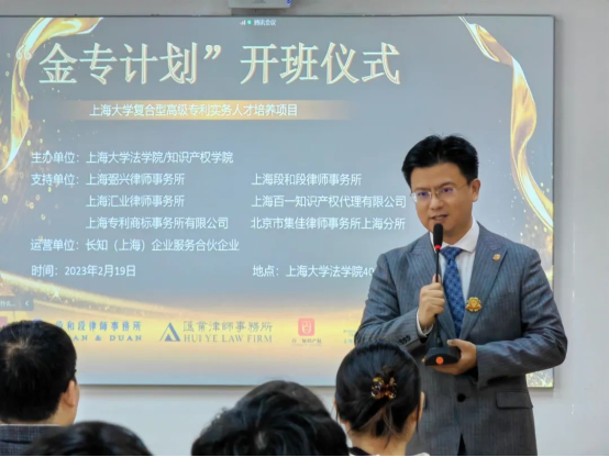 2月19日,上海大学复合型高级专利实务人才培养项目“金专计划”首期培训正式启动,来自计算机科学与技术、微电子学、物理学、机械设计制造及其自动化、信息与计算科学、电气工程及其自动化、应用化学、生物工程、数学与应用数学、新能源科学与工程、智能制造工程等理工专业的首期50名学员参加了开班仪式。