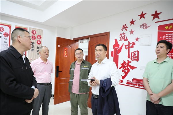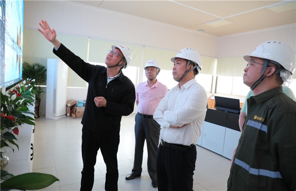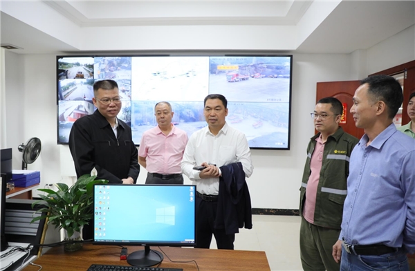 郭成战部长一行实地参观了谷城矿业的中控室、二号制砂楼控制台、运输车辆调度室、产品展览室、党建室。