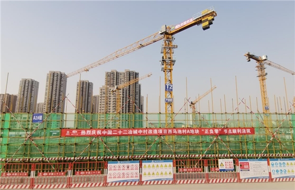 近日,中国二十二冶集团投融资事业部保定城市更新项目取得重要进展——西马池A地块2#主楼地下室结构封顶,率先冲出“正负零”,项目迈上主体结构施工“快车道”。