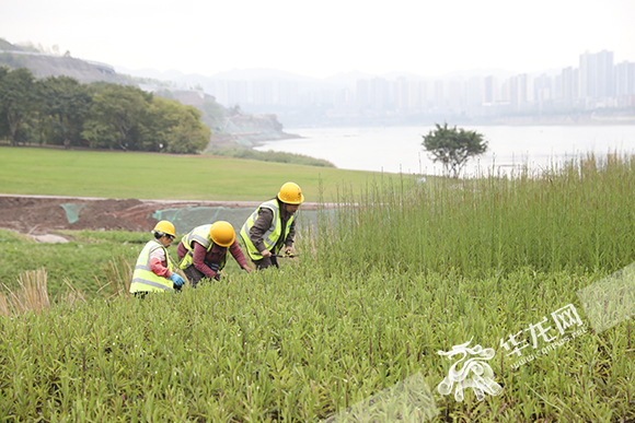 工人正在进行绿化工程施工。华龙网-新重庆客户端 首席记者 李文科 摄