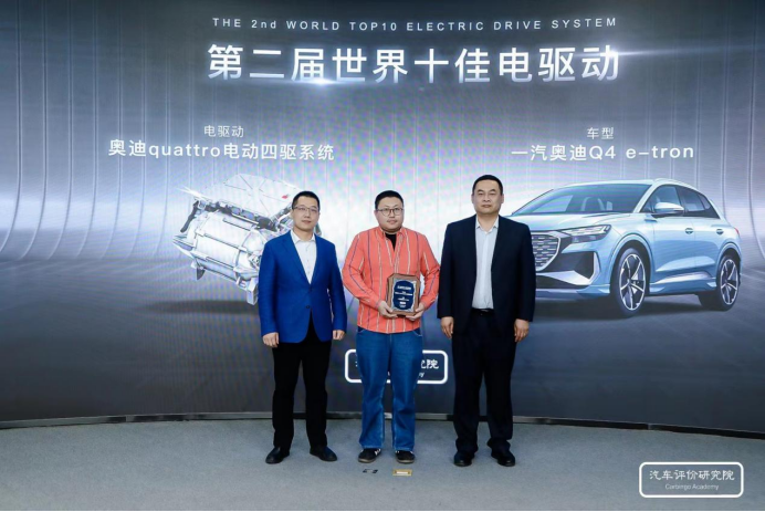 汽车评价研究院首席研究员王冀,北京航空航天大学交通科学与工程学院教授、国家乘用车自动变速器工程技术研究中心副主任、中国汽车工程学会齿轮技术分会副主任王书翰,为一汽奥迪企业代表颁奖